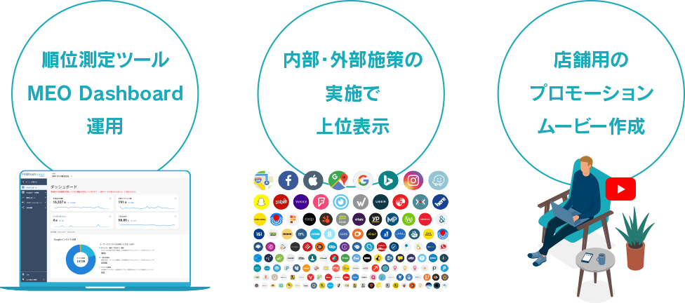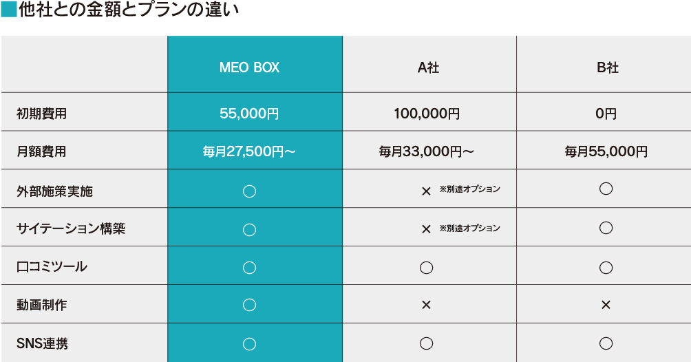 当社のMEOサービス『MEO BOX by CARAMEL BOX』は、Googleマップ専用エリアにおいて、自社の店舗情報を上位に表示にさせるための施策を行います。